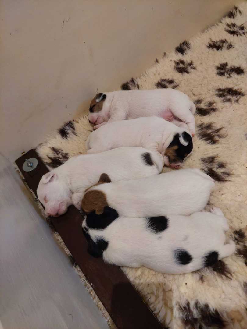 4 Rüden / 1 Hündin in braun-weiß und tricolor