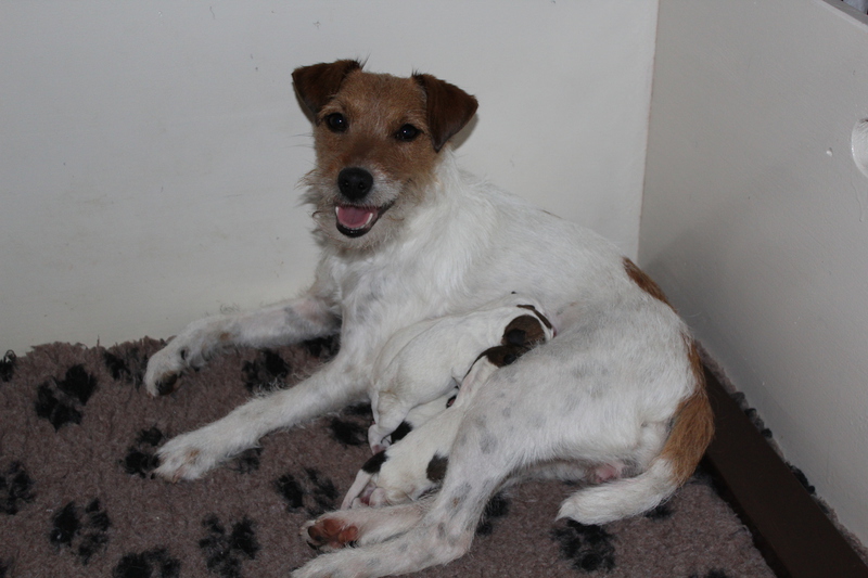 Käthe hat ihren ersten Wurf absolut souverän und instinktsicher zur Welt gebracht! Die Geburtsgewichte lagen zwischen 220 und 250g. Die Welpen nehmen gut zu und auch das Kupieren der Ruten haben sie gut überstanden. Nun freuen wir uns auf die nächsten Wochen!