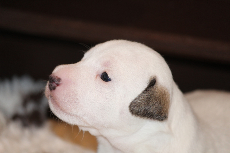 Die Augen sind auf! Und die erste Wurmkur gab es auch schon für die Zwerge. Alles läuft weiterhin ohne Probleme und bald ziehen die Welpen in den Auslauf im Wohnzimmer um.