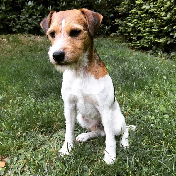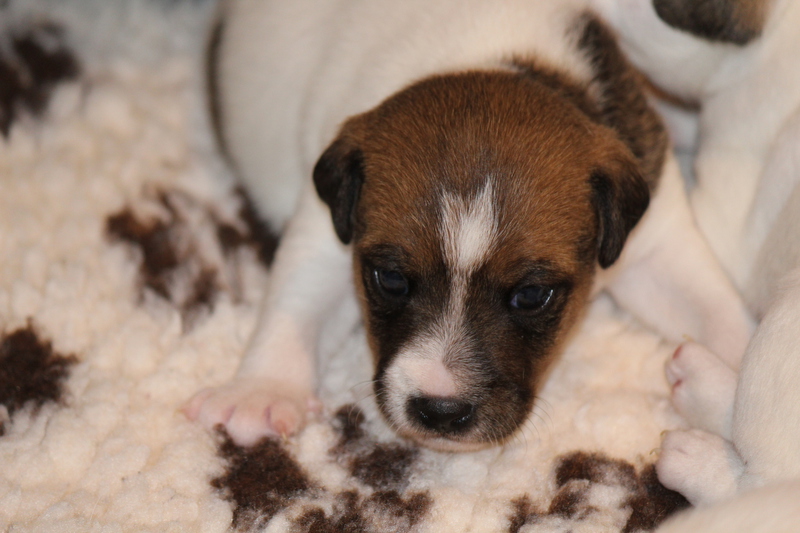3 Rüden und 1 Hündin in braun-weiß und tricolor